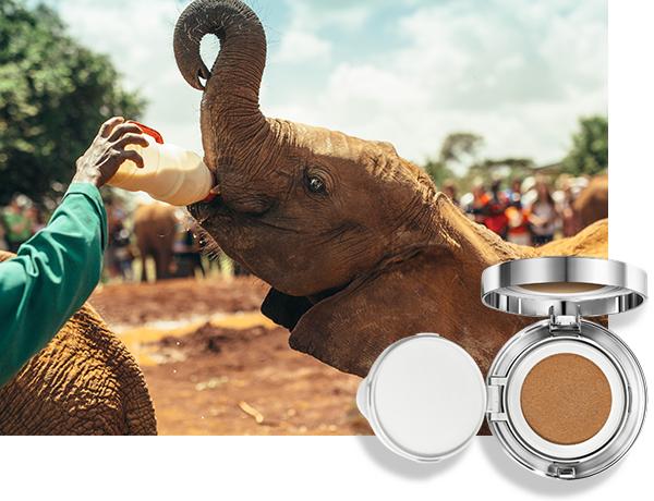 With our Future Skin Cushion Foundation we’re supporting our longtime conservation partners Sheldrick Wildlife Trust in their successful orphaned elephant rehabilitation program and work safeguarding natural habitats for all species across Kenya. Every cushion feeds an orphan baby elephant rescued by the Sheldrick Wildlife Trust. 1 cushion = 1 bottle of milk.