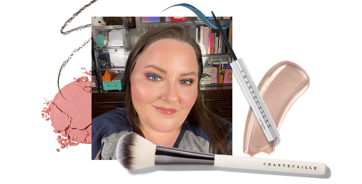 “3 makeup must-haves: an amazing highlighter, colorful eyeliner, and Chantecaille Perfect Blur Finishing Powder”